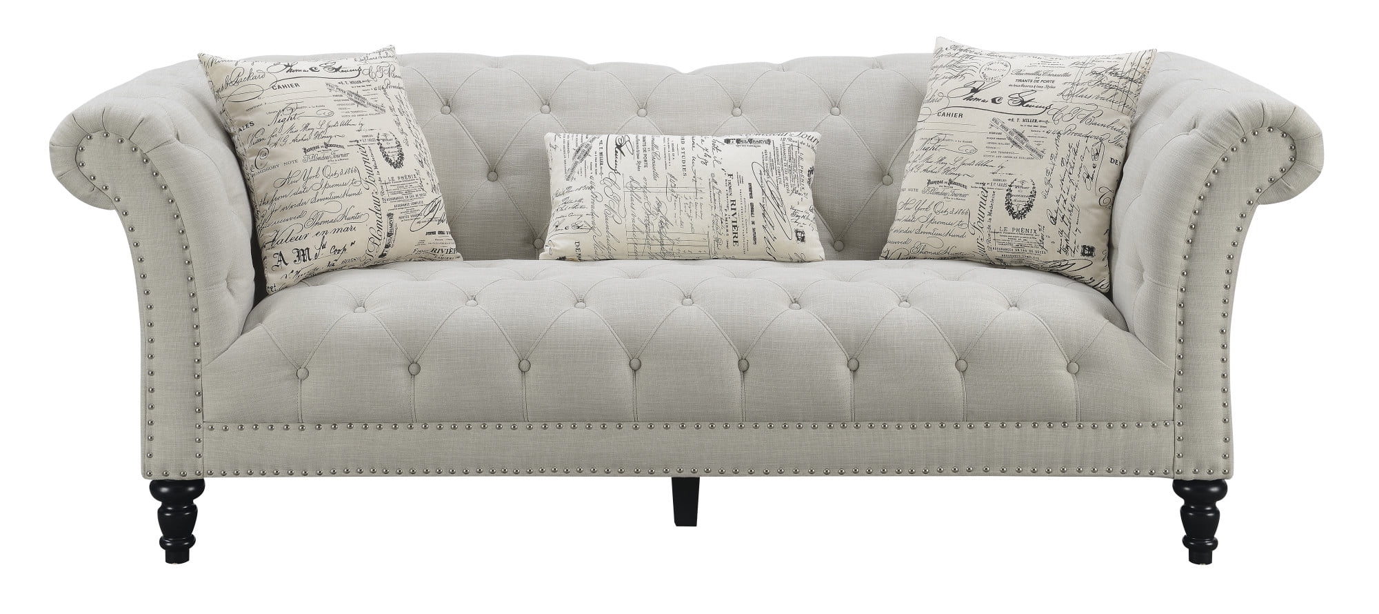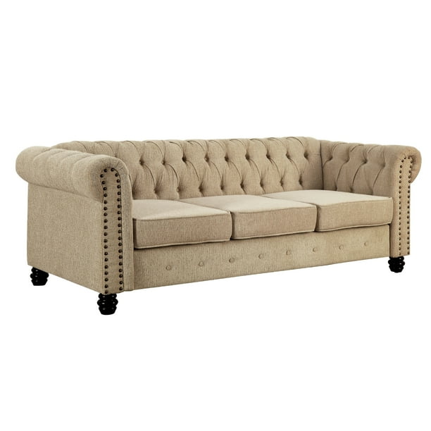 Furniture Of America Tufted Traditional Faux Linen Bakari Sofa Ivory Walmart Com